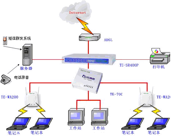 由上面的拓撲結構,我們可以看出,幾乎所有的局域網(wǎng)均可以實(shí)現安裝我們的系統,而且不需增加或改變任何硬件結構。