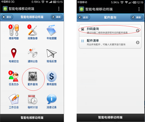 出庫保修二維碼:配件出庫給客戶(hù)更換配件的時(shí)候,可以打印出保修二維碼信息:物資編號,更換日期,名稱(chēng)……粘貼在配件上。將來(lái)需要再次更換時(shí),維保人員就可以通過(guò)掃描配件上的二維碼獲得相應的保修信息。